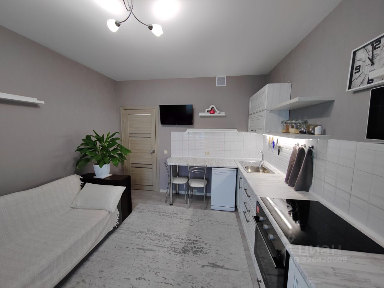 - в квартире остается кухонный гарнитур, духовой шкаф Hanza, индукционная панель Electrolux, встроенные шкафы на лоджии и в комнате, стеллажи в гардеробной, мебель в прихожей, компьютерный стол, а также диван;