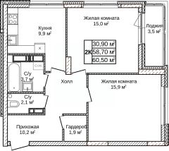 Продаётся 2-комнатная квартира в строящемся доме (Дом 1), срок сдачи: IV-кв. 2027, общей площадью 60.5 кв.м., на 23 этаже. Новый жилой комплекс "по пр.Гагарина" от застройщика "СЗ НО Дирекция по строительству" расположен по адресу: городской округ Нижний Новгород, деревня Ольгино