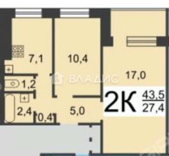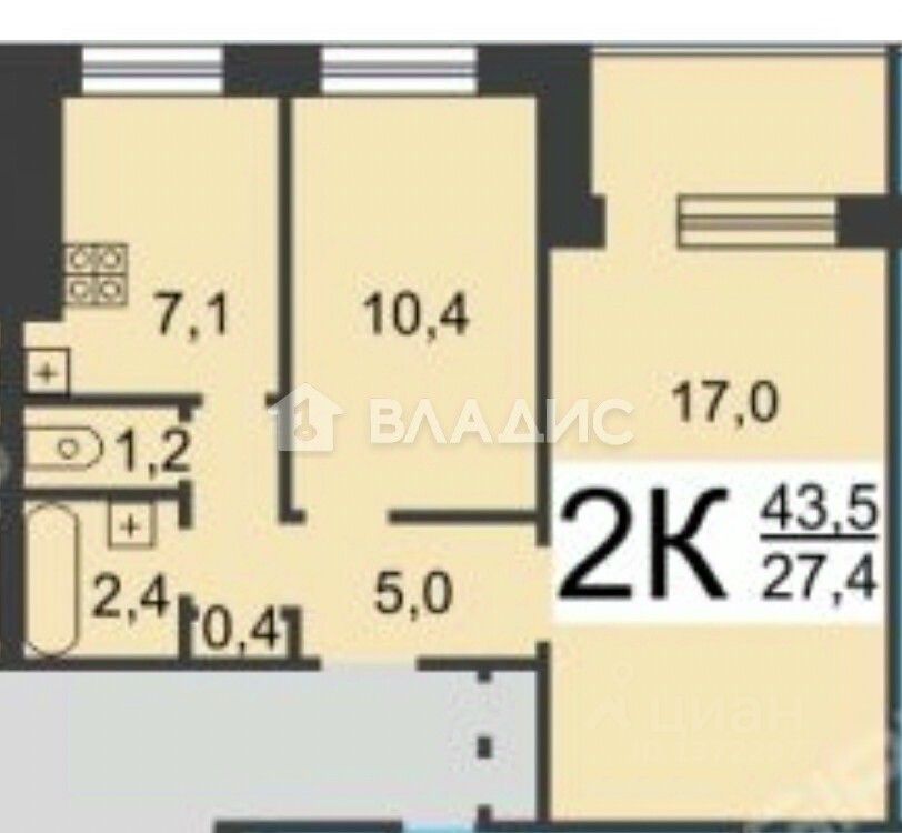 Панельный дом | 7 этаж Общая площадь — 43 м²