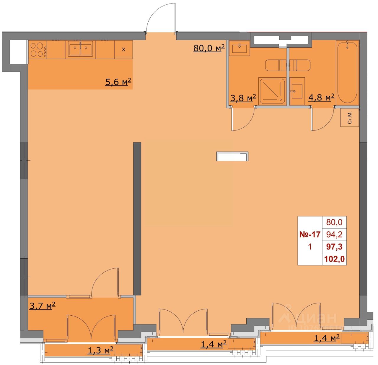 Общая площадь93,7 м²