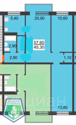 | Площадь: 57.5 м² | Этаж: 2/5 | Панельный дом 1968 г.п.