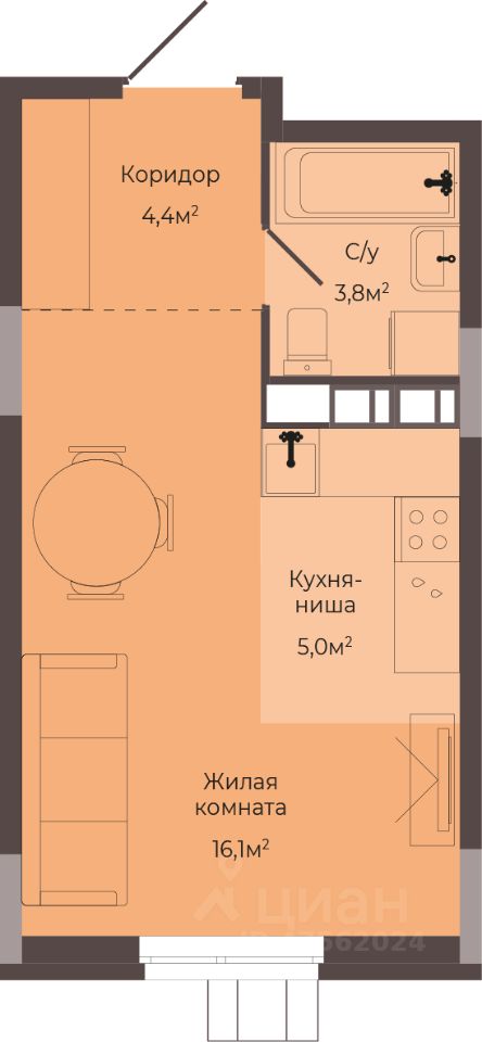Жилая площадь16,1 м²