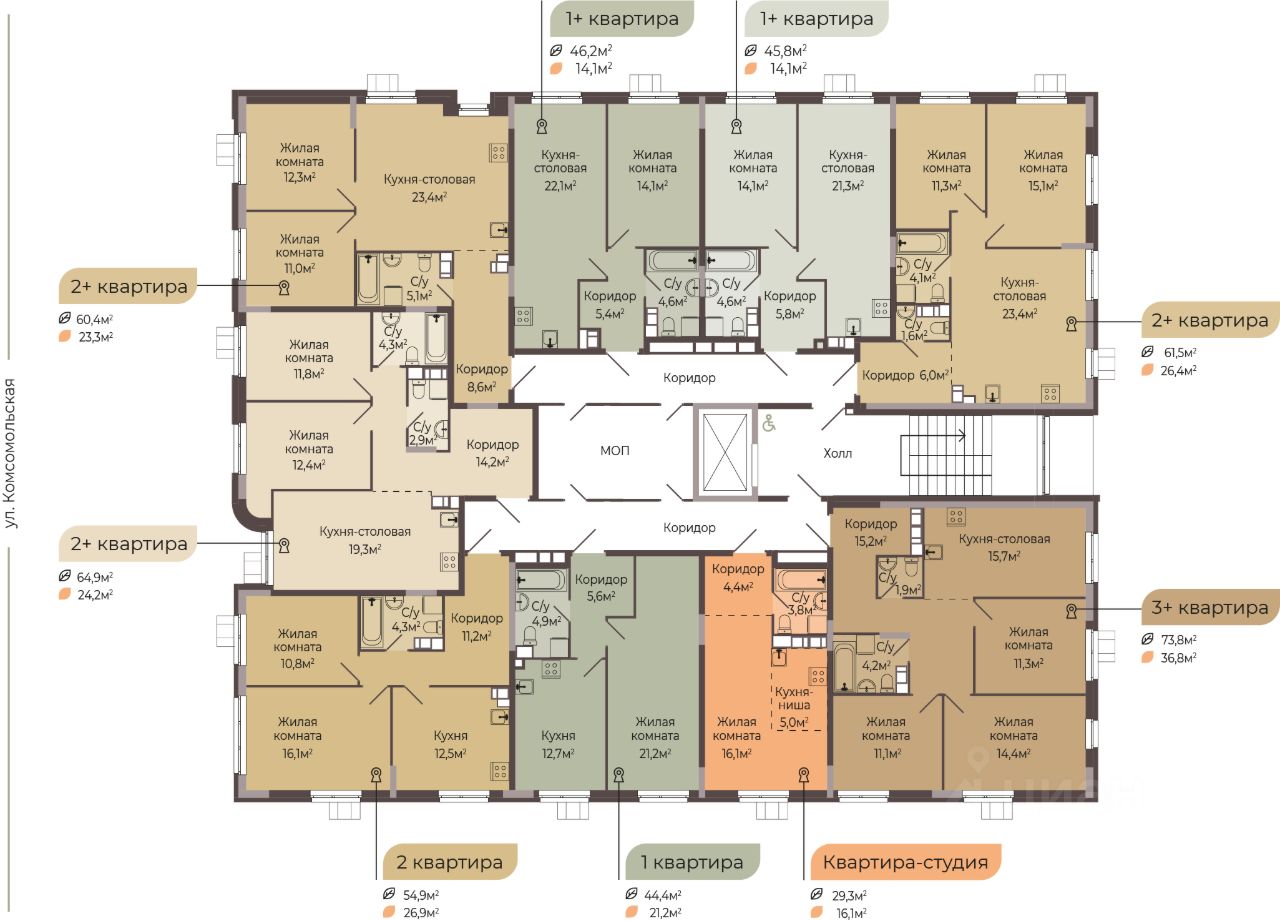 КВАРТИРА С ЧИСТОВОЙ ОТДЕЛКОЙ. "Трио" — это новый жилой комплекс комфорт-класса, который расположится на Комсомольской улице в Автозаводском районе Нижнего Новгорода. ЖК "Трио" состоит из трёх ярких одноподъездных корпусов. Высота каждого корпуса не превышает 8 этажей. А это значит, что дом будет "камерный", с небольшим количеством соседей, которые станут настоящими друзьями. В ЖК "Трио" запроектировано 7 видов планировочных решений площадью от 24,8 кв.м. до 89 кв.м. Всего в комплексе будет 200 квартир. Важным преимуществом является наличие кладовых, которые будут располагаться на 1 этаже. Благоустроенный закрытый двор с площадками для детей разных возрастов, зонами отдыха для взрослых и придомовой территорией с озеленением — станет любимым местом для прогулок. Для комфортного проживания и безопасности будущих жильцов в комплексе запроектировано 146 машиномест на прилегающей территории, что реализует концепцию жилого комплекса "Двор без машин". Приобретая квартиру в ЖК "Трио", вы обретаете новое качество жизни в уже сформировавшейся инфраструктуре, где в пешей доступности располагаются детские сады и школы, поликлиники и ветеринарные клиники, супермаркеты и торговые центры, остановки общественного транспорта, парикмахерские и т.д. Срок сдачи дома - 4 кв. 2026 г. Уточняйте подробные условия и наличие квартир в офисе продаж, записывайтесь на консультацию!