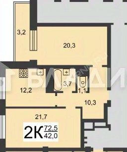 Продается просторная 2-комнатная квартира, 69.3 м²