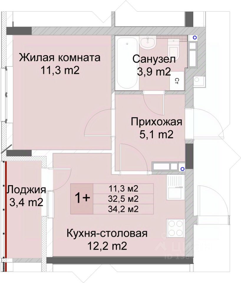 Продается однокомнатная квартира от застройщика с отделкой в ЖК "Кузнечиха город" на 2 этаже. Общая площадь: 34.2 кв.м., жилая: 11.3 кв.м., площадь просторной кухни-столовой: 12.2 кв.м. Все окна выходят на одну сторону. В квартире одна лоджия, один совмещенный санузел. Высота потолков 2.5 м.