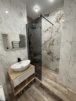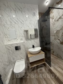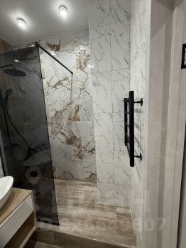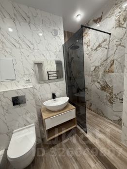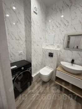 С\уз совмещен в современном керамограните, душевая кабина в кафеле, инсталляция, новая стиральная машина.