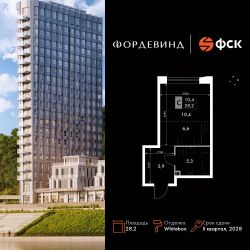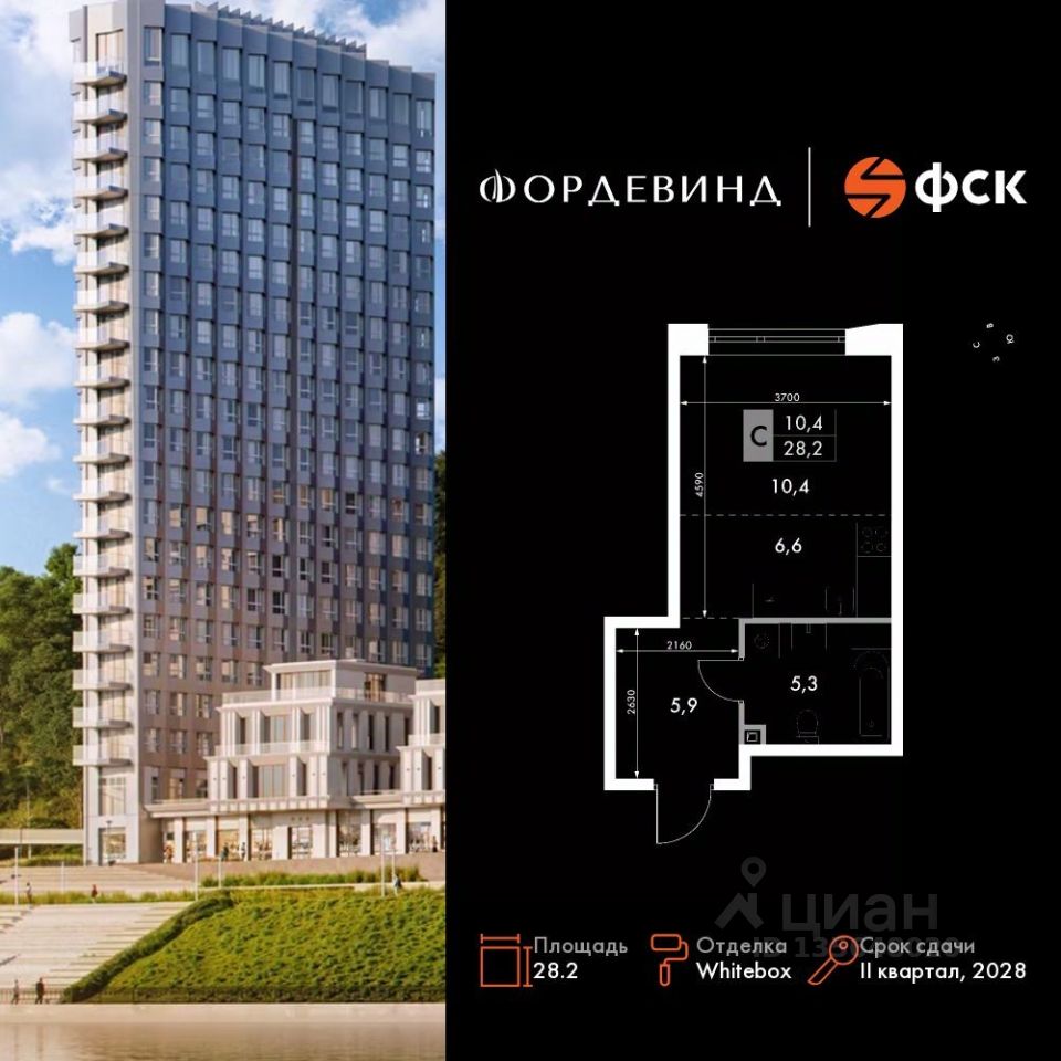 Продаётся квартира-студия номер 270 общей площадью 28.2 кв.м. на 12-м этаже 16 этажного здания. Отделка Whitebox. Цена с учётом скидки.