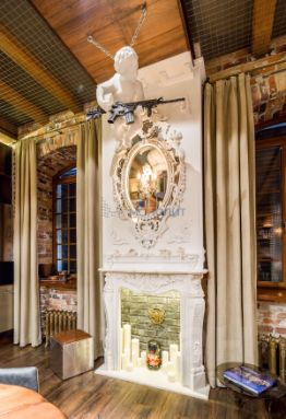 Благодаря вариациям поверхностей, фактур, цвета и ритма, натуральный материал то "солирует" (в кабинете), то "вступает в диалог" со стеклом, то ведет себя вызывающе - в, казалось бы, традиционном соседстве со старинной кирпичной кладкой. Именно оно придает интерьеру ощущение тепла и надежности как от прикосновения крепких и заботливых мужских рук. Именно сочетание памятных воспоминаний и удобства современного мира делают этот объект уникальным и неповторимым.