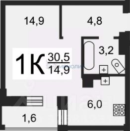 Предлагаем к продаже светлую однокомнатную квартиру общей площадью 30,50 м² на 2-м этаже