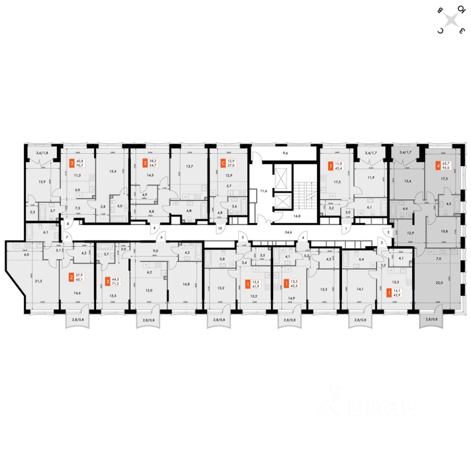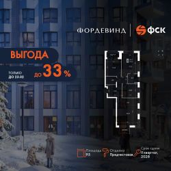 Продаётся 4-к квартира номер 326 общей площадью 95 кв.м. на 4-м этаже 10 этажного здания. Отделка Whitebox. Цена с учётом скидки.