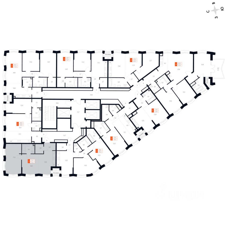 Продаётся 2-к квартира номер 11 общей площадью 53.3 кв.м. на 2-м этаже 20 этажного здания. Предчистовая отделка. Цена с учётом скидки.