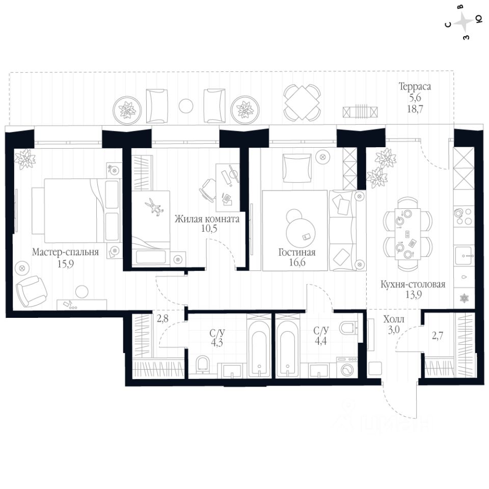 - Линейная планировка - максимальная функциональность и удобство.