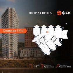 Продаётся 4-к квартира номер 115 общей площадью 113.8 кв.м. на 14-м этаже 20 этажного здания. Предчистовая отделка. Цена с учётом скидки.