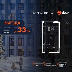 Продаётся квартира-студия номер 271 общей площадью 28.9 кв.м. на 12-м этаже 16 этажного здания. Отделка Whitebox. Цена с учётом скидки.