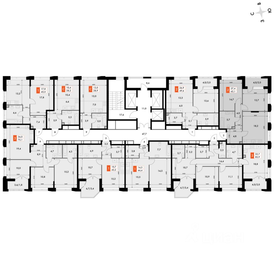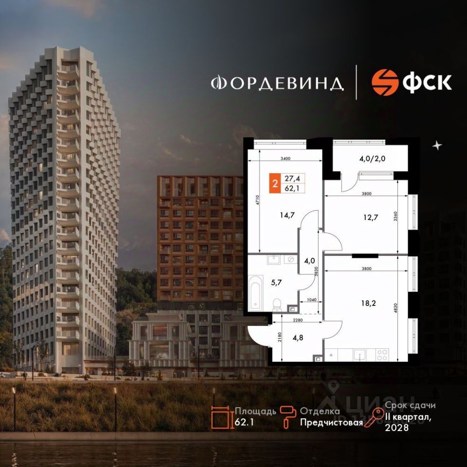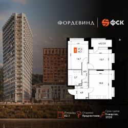 Продаётся 2-к квартира номер 273 общей площадью 62.1 кв.м. на 13-м этаже 16 этажного здания. Предчистовая отделка. Цена с учётом скидки.
