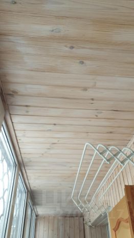 Большая лоджия, с выходами из двух комнат, утеплена и общита евро-вагонкой.