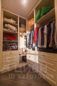 Множество систем хранения: вместительная гардеробная в спальне и встроенные шкафы. Мебель премиум-класса оснащена доводчиками для плавного и бесшумного закрывания.