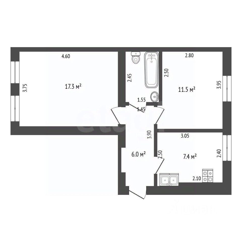 Планировка практичная: изолированные комнаты и совмещенный санузел.
