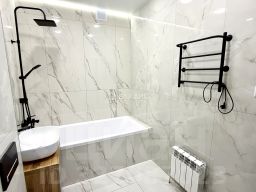 В квартире сделан современный ремонт по дизайн проекту. Пол- широкоформатный керамогранит 120*60 -в комнатах водостойкий ламинат 33 класс с фаской толщиной 10 мм,- премиум класса,