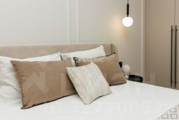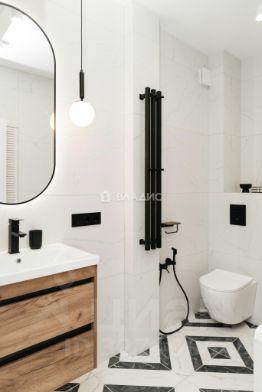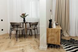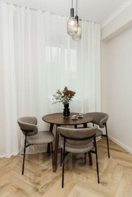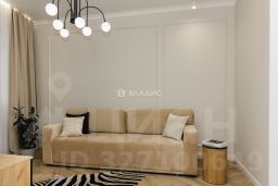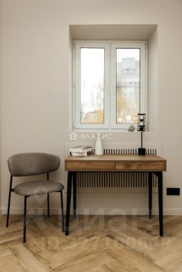 Дизайнерский ремонт с полной меблировкой и техническим оснащением, высокие потолки (3,2 м) и просторные комнаты (19,5 кв. м и 13,2 кв. м).
