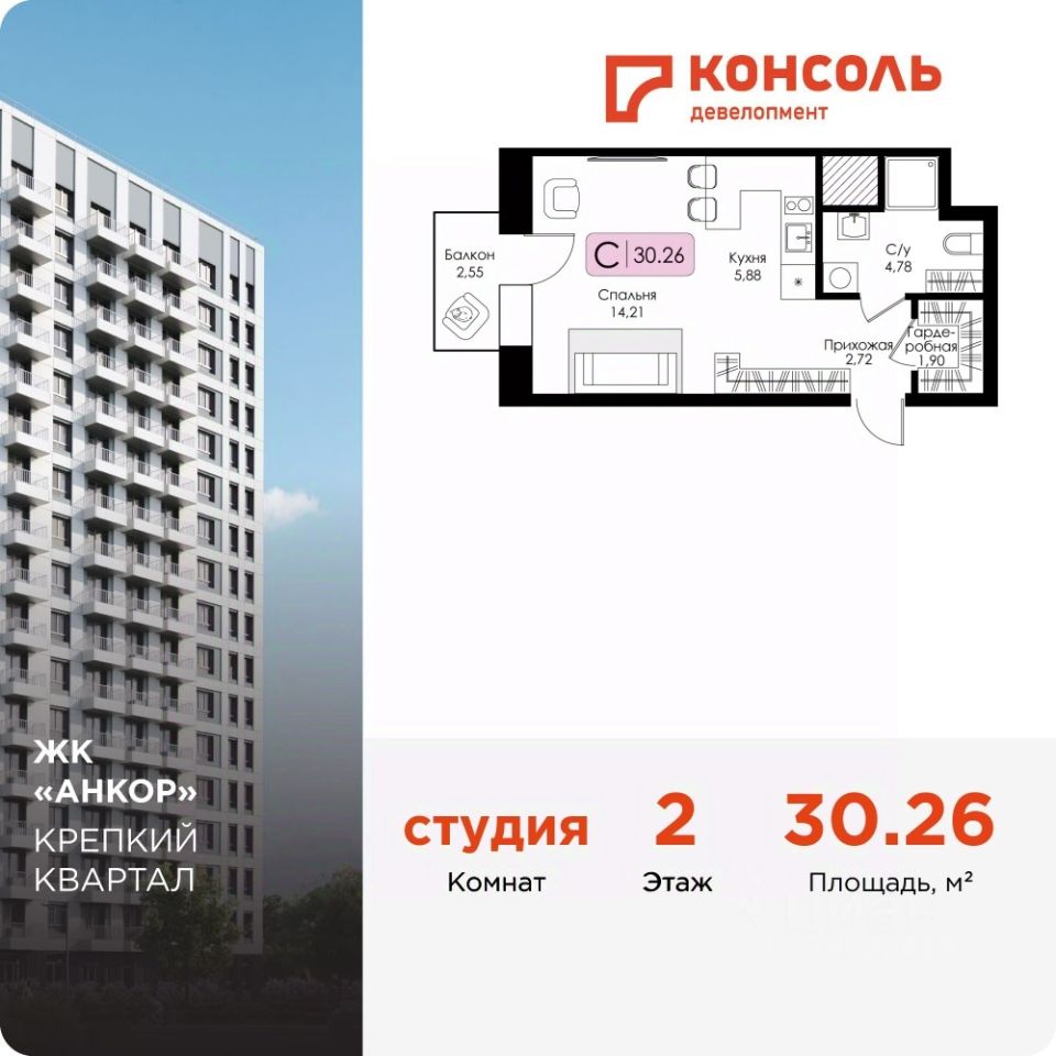 Общая площадь30,26 м²