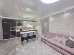 Огромная кухня-гостиная с акустической системой и большим модульным диваном станет любимым местом отдыха! Кухонный гарнитур и островок оснащены столешницами из акрила и всей необходимой встроенной техникой: Варочная панель, Духовка, Микроволновая печь и конечно же посудомоечная машина!