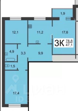 3-х комнатная квартира 79 кв.м.