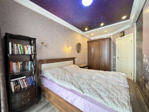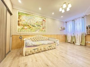 Продается просторная трехкомнатная квартира с евроремонтом единственная в этом доме, расположенная на 19 этаже 21-этажного дома. Общая площадь квартиры составляет 76,5 кв. м, из которых 28,3 кв. м отведено под жилую зону, а кухня занимает впечатляющие 39,73 кв. м. Высота потолков — 3 метра, что создает атмосферу простора и света. Окна выходят на улицу, обеспечивая прекрасный вид.