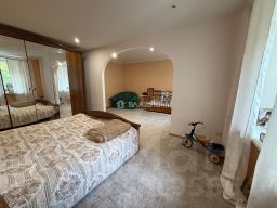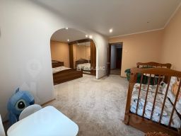 В квартире одна изолированная спальная комната площадью 9,4 кв.м и была выполнена перепланировка: кухня (8,7кв.м) совмещена с гостиной (15,7кв.м), и комнаты (14,6 и 12,4 кв.м) разделенные аркой на взрослую и детскую зону/кабинет.