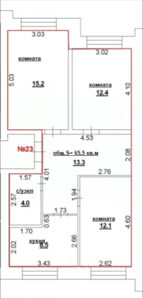 -Площадь комнат: 15.2+12.4+12.1 кв.м.