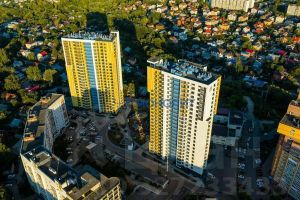 Жилой комплекс "Янтарь" состоит из двух 24-этажных зданий с общим подземным паркингом. На крыше паркинга — детская площадка, зона отдыха и спорткомплекс.