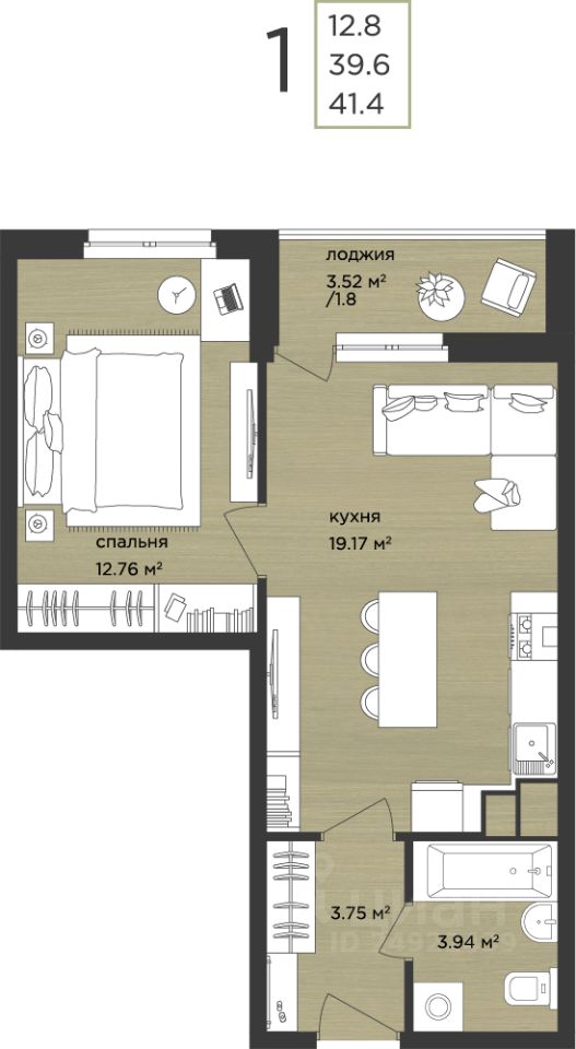 Продаётся 1-комнатная квартира в строящемся доме (Дом 17), срок сдачи: III-кв. 2026, общей площадью 41.3 кв.м., на 14 этаже. Расположение, транспортная доступность