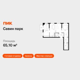 Продаётся 2-комн. квартира площадью 65,1 кв.м на 15 этаже 15 этажного дома (Корпус 6, Секция 1) проекта ПИК Савин парк. Светлый просторный подъезд на уровне земли, функциональная планировка, большие окна, c отделкой.