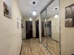 — В прихожей организована удобная ниша, зона хранения в которую встроен функциональный зеркальный шкаф Стенли до потолка.