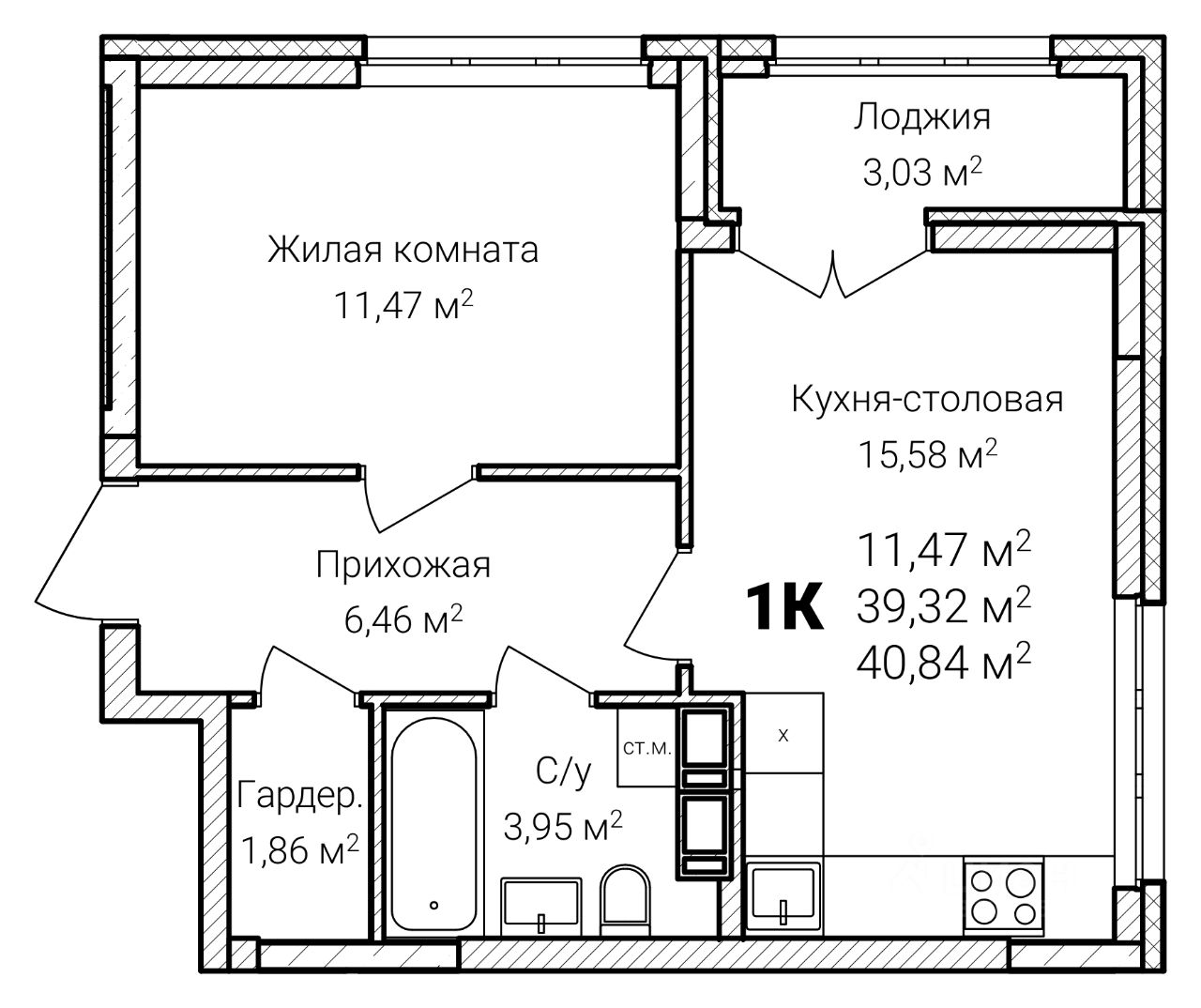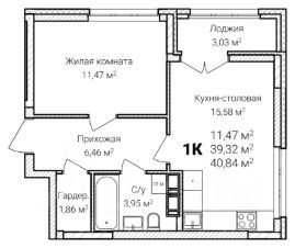 Общая площадь40,84 м²