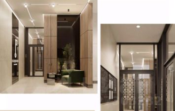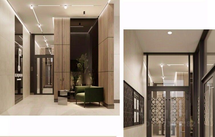 Лобби для гостей на первом этаже. Интерьерные картины на этажах.