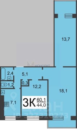 • Хорошая планировка: кухня 7 м², комнаты 18, 14 и 12 м².