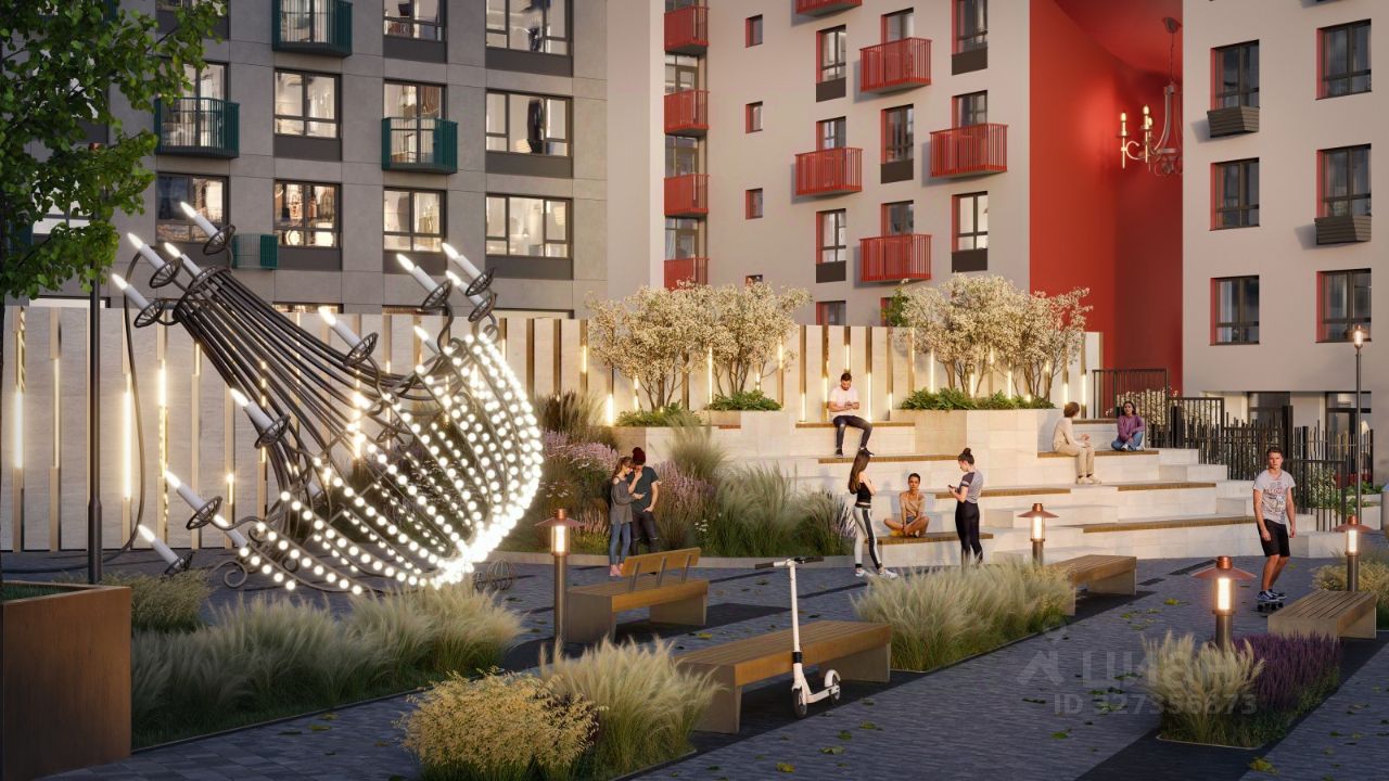 Закрытые дворы с игровыми, спортивными площадками, тихими уголками для отдыха, йога-сквер и зона общественных огородов для семейного досуга. За пределами квартала детский сад на 200 мест (сдается в 2028 г.) и ландшафтный парк с памп-треком, скейтпарком, вело- и пешеходным маршрутами. Первый этаж займет торговый и гастро-кластер со всем необходимым для комфортной жизни наполнением. Главное место притяжения - открытая площадь с ресторанами, фонтаном, арт-объектами и лаунж-зонами.