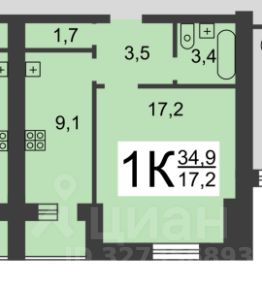 34,9 м²