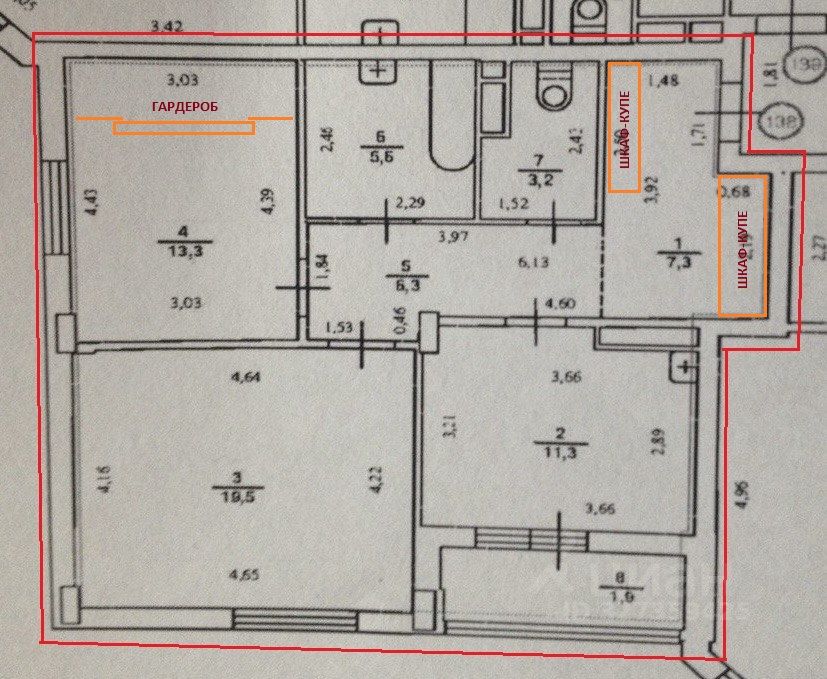 - полноценная гардеробная в спальне с раздвижными зеркальными створками.