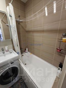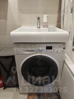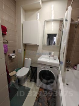 В ванной: зеркало, стиральная машинка, вся сантехника