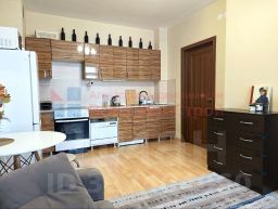 В квартире остается новая встроенная кухня, в спальне кровать и 2 шкафа.