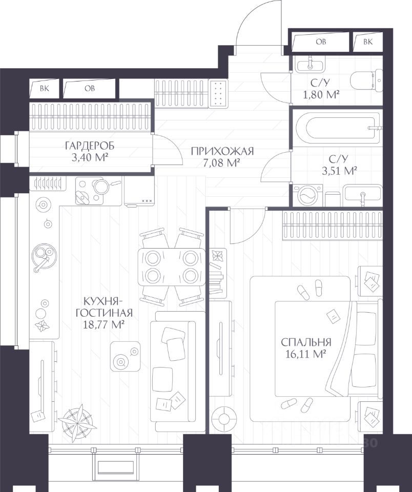 Общая площадь50,67 м²