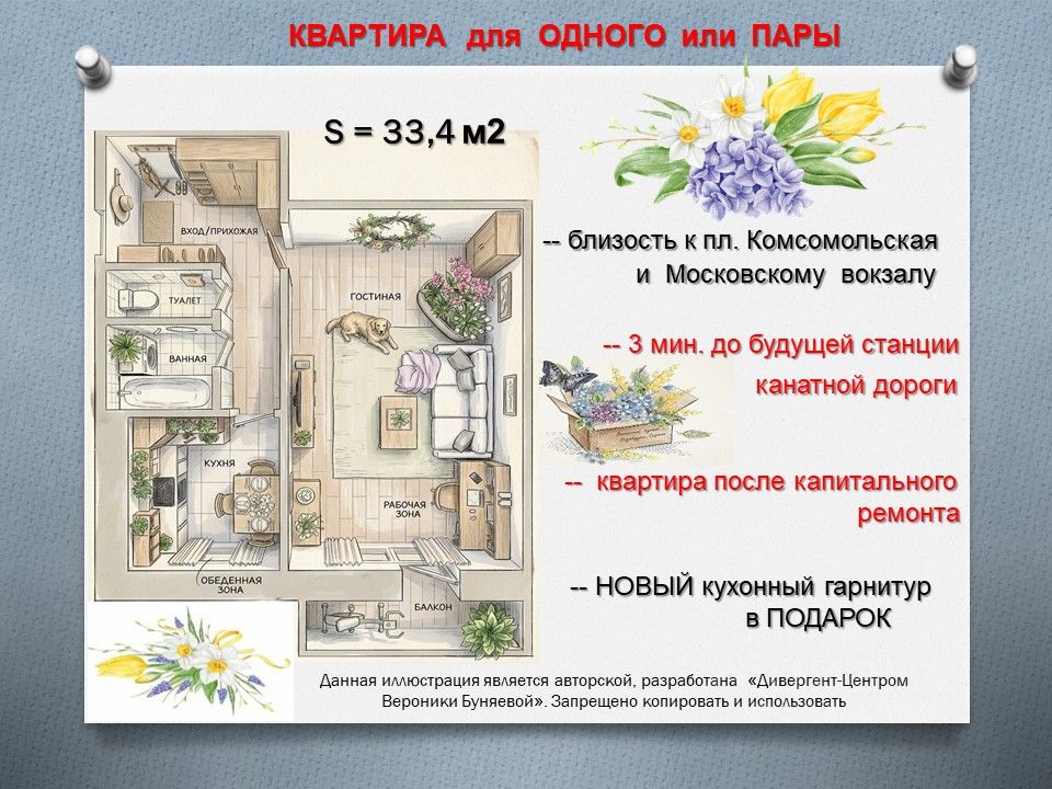 Мы повысили КОМФОРТ, чтобы Вы могли СОЗДАТЬ атмосферу УЮТА и ГАРМОНИИ! КВАРТИРА с КАПИТАЛЬНЫМ РЕМОНТОМ, за качество ОТВЕЧАЕМ! БЛИЗОСТЬ к пл.КОМСОМОЛЬСКАЯ и ОКСКОМУ СЪЕЗДУ! ================================================= О ДОМЕ --- дом построен из железобетонных плит --- в доме 4 подъезда --- придомовая территория ухоженная --- чистый подъезд --- парковка во дворе ================================================= О КВАРТИРЕ --- общая площадь без учета балкона 32,4 кв.м. --- большая ПРИХОЖАЯ 6,1 кв.м., где можно разместить встроенный шкаф для хранения --- жилая КОМНАТА 17,0 кв.м., где вы эффективно организуете пространство, учитывая ваши личные предпочтения и потребности --- в комнате проложена трасса для установки кондиционера --- БАЛКОН застеклен, внутри сделана отделка --- ВАННА и ТУАЛЕТ выполнены в скандинавском стиле, в ванной комнате предусмотрено место для установки и подключения стиральной машинки --- произведена замена системы отопления и водоснабжения --- полностью заменена электропроводка и установлен счетчик с усилителями --- выровнены стены, полы --- квартира оснащена НОВОЙ газовой варочной панелью и НОВОЙ вытяжкой, готовы оставить в ПОДАРОК НОВОМУ СОБСТВЕННИКУ --- установлены новые межкомнатные двери и новая входная дверь ================================================= О ЛОКАЦИИ --- микрорайон Молитовка --- близость к Московскому вокзалу, метрополитену и прямое сообщение с Верхней частью города --- красивые набережные для прогулок, благоустроенные скверы --- пляжные зоны на берегу р.Ока и оз.Силикатное --- выход на причал Молитовка, а это - баня и банный чан, рыбалка, прогулки на яхтах и сапбордах (можно взять в аренду лодку или сапборд) --- парк Дубки с величественными вековыми дубами для прогулок и восстановления энергии --- для души Вы можете посещать Церковь в честь иконы Пресвятой Богородицы Умиление --- взрослая Поликлиника 2 --- Физкультурно-оздоровительный комплекс ОАО Теплообменник, Спортивный клуб Энергия, Стадион Этна --- универмаг Муравей, строительный гипермаркет Максидом, гипермаркет Окей, рынок Заречный, рынок Комсомолка, ТЦ АвтоМОЛЛ --- офисы доставки Валдбериз, Озон, Яндексмаркет --- вторая канатная дорога от Заречки до проспекта Гагарина должна заработать в 2026 году, рядом с домом будет проходить станция на ул. Баумана, а это 3 мин. ходьбы ================================================= УСЛОВИЯ ПРОДАЖИ 1 собственник, право на основании ДКП (покупали без ипотеки и материнского капитала), без долгов и обременений, свободна от личного имущества, никто не прописан, документы готовы, за быстрый выход на сделку СДЕЛАЕМ СКИДКУ