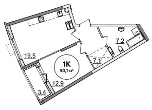 Однокомнатная квартира 50,1м2-24 этаж, дом1 по генплану - дом сдан