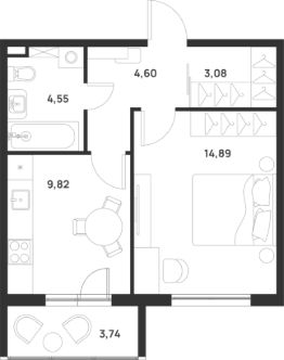 Общая площадь38,81 м²