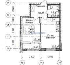 ???? Общая площадь квартиры составляет 38,1 кв.м., при этом кухня-столовая занимает 15,7 кв.м. Просторная комната площадью 12,1 кв.м. позволит создать уютное место для отдыха и работы. Современный санузел с качественной плиткой приятно удивит своим дизайном.