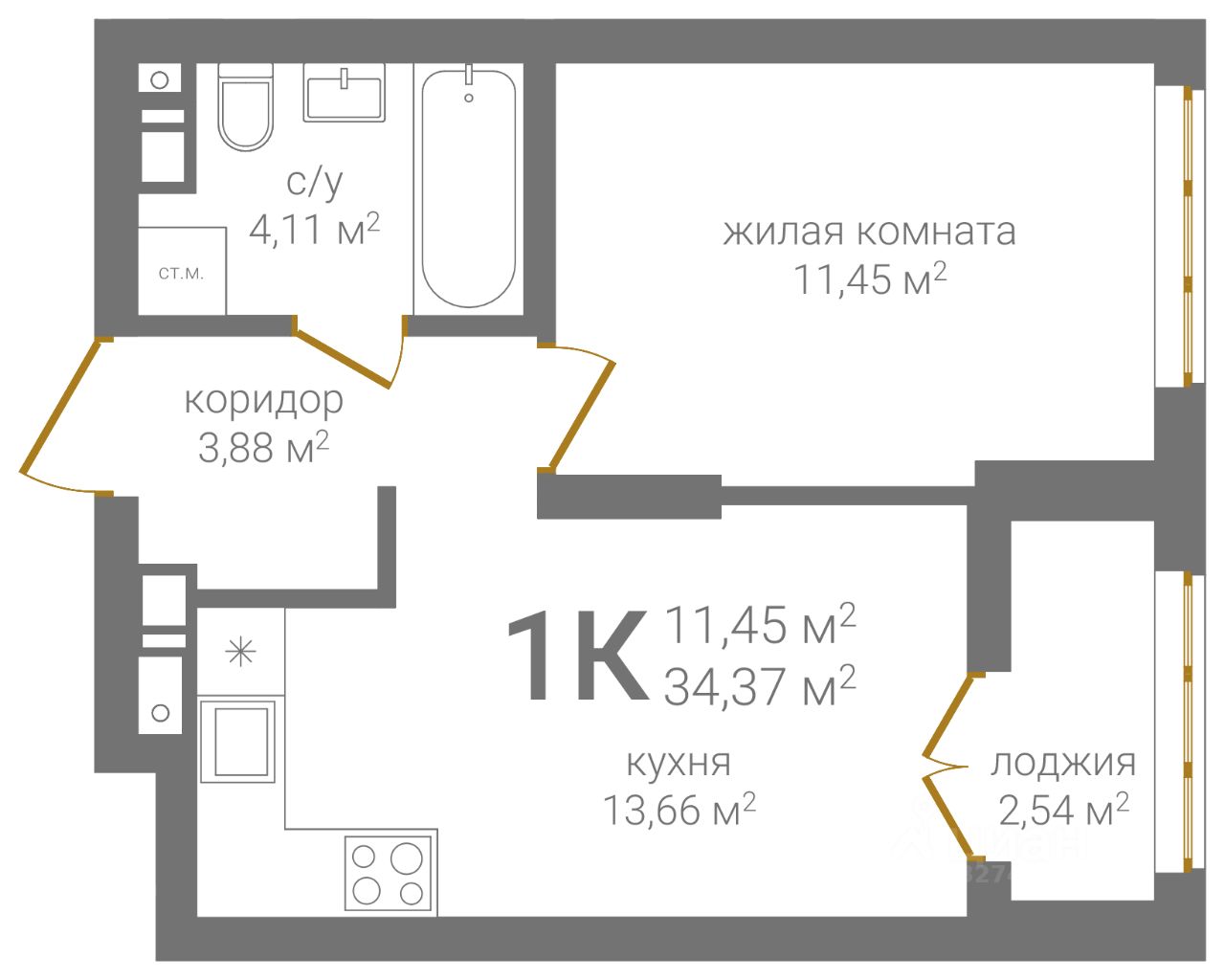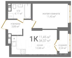 Общая площадь34,37 м²