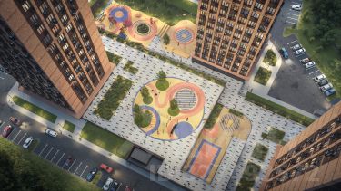 Благоустроенный двор 5000 м2, спортивные и детские площадки