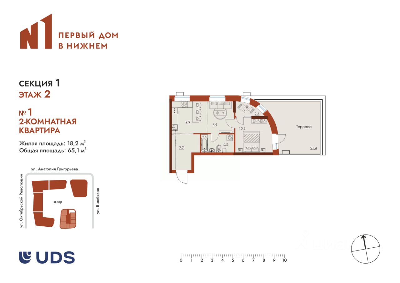 Выбирайте уют и свободу! 2-комнатная квартира в "N1 Первый дом в Нижнем" с просторной террасой